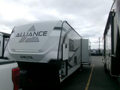 Each Delta travel trailer features at least one slide for added interior space, a private bedroom with a 60" x 80" size bed, complete kitchen and bath amenities, plus a 10-cu. ft. 12-volt refrigerator. There are even a couple of bunk models so no matter the size of your family, Alliance has a Delta travel trailer that you are sure to love.