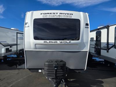 With any Cherokee Alpha Wolf travel trailer by Forest River, you'll enjoy outstanding amenities, quality construction, and an affordable price. Each model features a "ToughBend" rigid skirt metal design, 5/8" tongue and groove plywood floor decking, and a "SuperTruss" roof structure built for countless camping memories. There is a pet friendly "clean sweep" floor design with no heat vents indoors, along with a super lumen lighting system, a 15,000 BTU quick cool central air conditioning, and many more comforts. There are many convenient exterior features such as, Leash Latch pet safety technology, an outside shower with hot and cold water, and exterior steps with oversized landing and quick release. The Weather Guard Package will add protection against the elements with an armored underbelly tank enclosure and forced air heat, thermo-control reflective safety glass windows, and upgraded laminated exterior walls with block foam insulation!