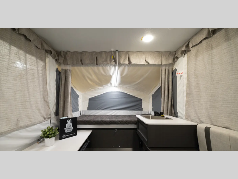 Sleeps 5 Length 11 ft 10 in Ext Width 7 ft Ext Height 5 ft Hitch Weight 250 lbs Dry Weight 1763 lbs Cargo Capacity 583 lbs Furnace BTU 20000 btu Available Beds Two Tent End Beds Refrigerator Type 12V LP Tank Capacity 20 lbs AC BTU 15000 btu Axle Count 1 Number of LP Tanks 2 Shower Type N/A Electrical Service 30 amp Open Length 17 ft 2 in -