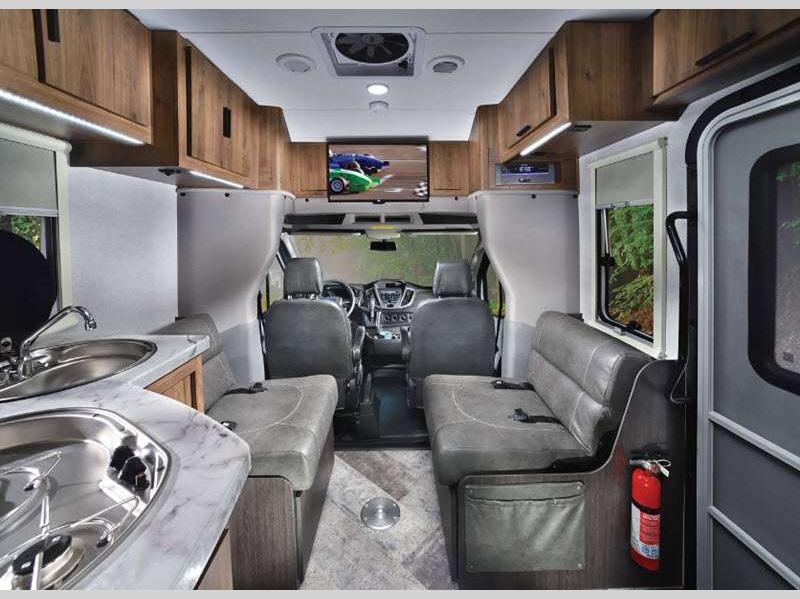 Sleeps 2 Slides 1 Length 26 ft 1 in Ext Width 7 ft 3 in Ext Height 10 ft 5 in Exterior Color Full Body Paint Options; Platinum, Onyx GVWR 10360 lbs Dry Weight 8714 lbs Cargo Capacity 1646 lbs Fresh Water Capacity 35 gals Grey Water Capacity 30 gals Black Water Capacity 28 gals Generator 2.8 kW Onan Gas Fuel Type Gasoline Engine Ford Eco-Boost 3.5L Chassis Ford Transit AWD Horsepower 275 hp Fuel Capacity 25 gals Wheelbase 178 in Available Beds Twin with Queen Conversion Torque 262 ft-lb Refrigerator Type LP/Electric 110V Refrigerator Size 5.3 cu ft Convection Cooking Yes Cooktop Burners 1 Shower Size 24" x 36" Number of Awnings 1 Axle Weight Front 4130 lbs Axle Weight Rear 7275 lbs LP Tank Capacity 41 lbs Water Heater Capacity 2.5 gal Water Heater Type Truma Combi AC BTU 13500 btu Basement Storage 30.5 cu. ft. TV Info LR 12V LED TV Awning Info 14' Power with LED Lights Gross Combined Weight 13500 lbs Shower Type Standard Electrical Service 30 amp Similar Floorplans