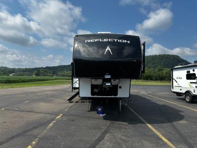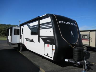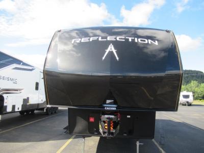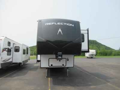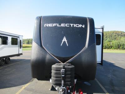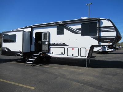 Grand Design is celebrating luxury, value, and towability with their Reflection fifth wheel and brand new travel trailer addition. These mid-sized fifth wheels represent the need for innovation, smaller, and easily-towed fifth wheel requests. The gel coat tan fiberglass exterior and aerodynamic front cap with maximum turn radius will provide you years of worry free camping. On the inside you will enjoy hand rubbed Maple cabinet doors with solid hardwood drawer fronts, leather furnishings, gunstock fixtures and hardware and a hi-rise faucet with pullout sprayer, king size pots and pan drawer, wide view radius skylight over the shower, a radius fireplace, and so much more. You can choose to add a free standing dining table and chairs, or dual pane windows to name just a few. The interior living space, residential eye-appeal, and unique layouts will raise expectations in the marketplace throughout the industry. This is definitely a weekend campers fifth wheel. There is currently one Reflection travel trailer which is also super light on mass, but super heavy on amenities! The same compromised high-end style, convenience, towabiltiy and legendary Grand Design quality has all been packed into this triple slide, private bunkroom unit. The perfect unit for a larger family. Come in and select your very own mid-size Reflection fifth wheel or travel trailer by Grand Design and enjoy your next weekend camping experience! Contact us for more information