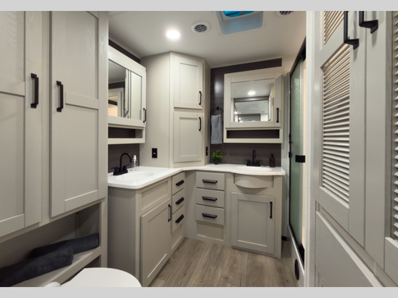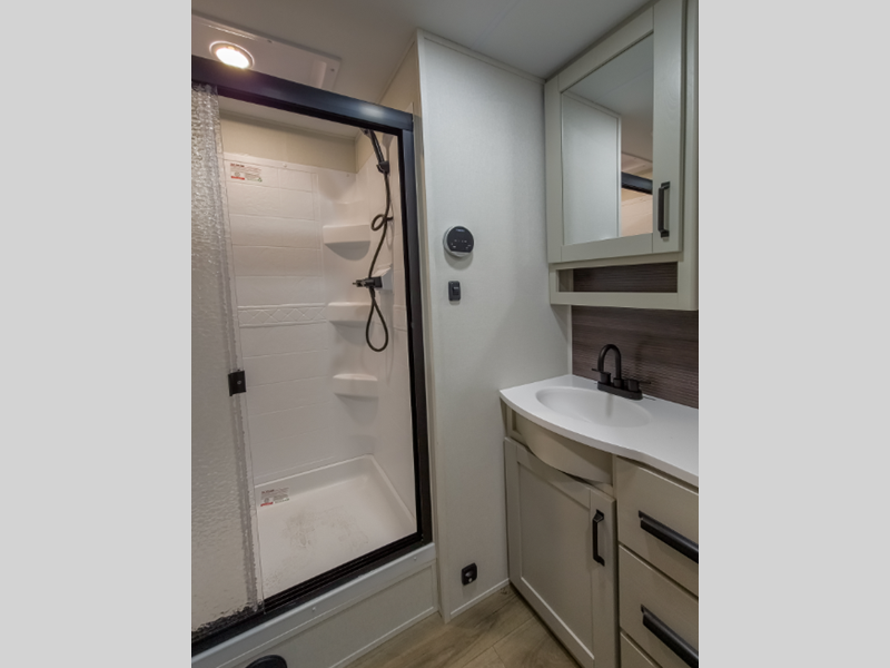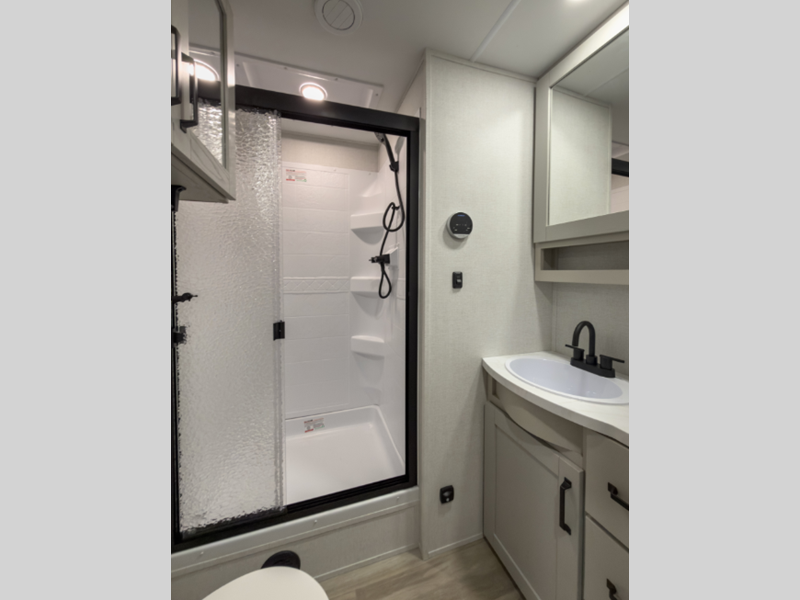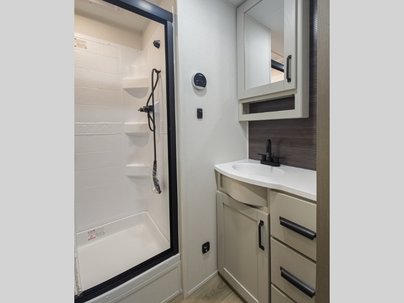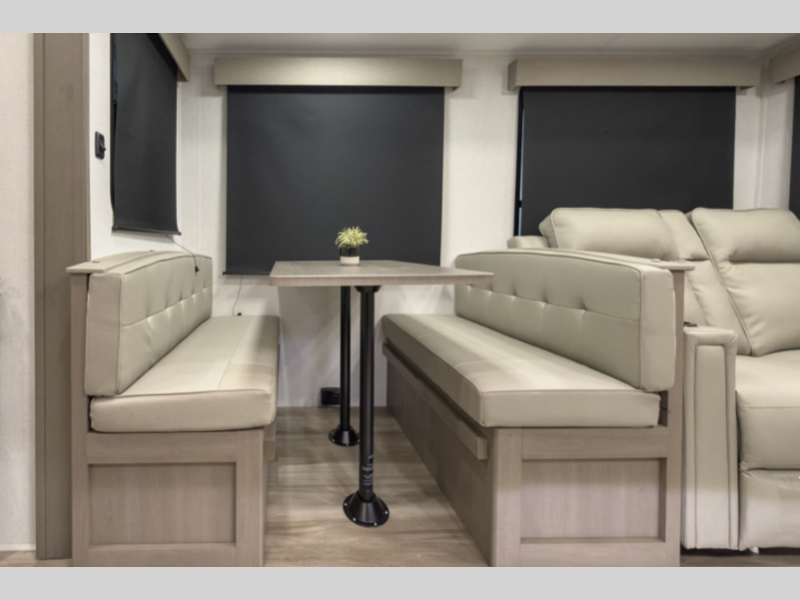 Reflection is built with the Arctic 4-Season Protection package which provides a 35K BTU high-capacity furnace, double insulated roof and front cap, a heated and underbelly with circulating heat, and 12V heat pads on the holding tanks to mention a few features that allow you to travel during any climate. The interior offers residential cabinetry, a deep-seated stainless-steel kitchen sink in the gourmet kitchen, a spacious shower with a glass door, and ductless flooring in the living area to name a few comforts.