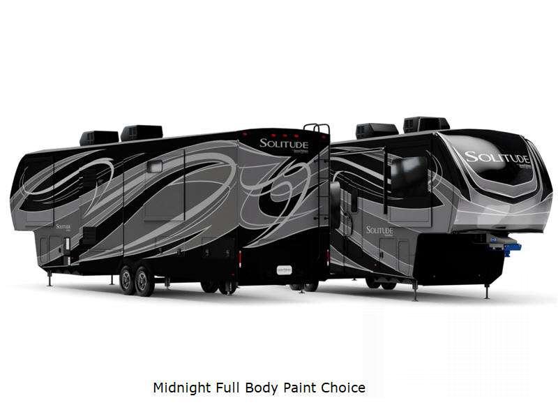 Choose a Solitude fifth wheel by Grand Design today, and experience full-time camping or extended-stay vacations with residential features, taller ceilings, deeper cabinets, and larger scenic windows!