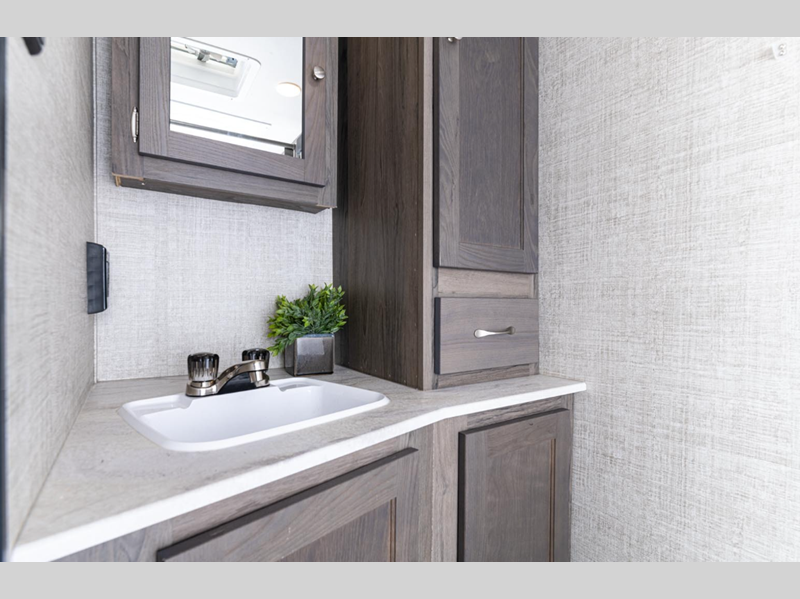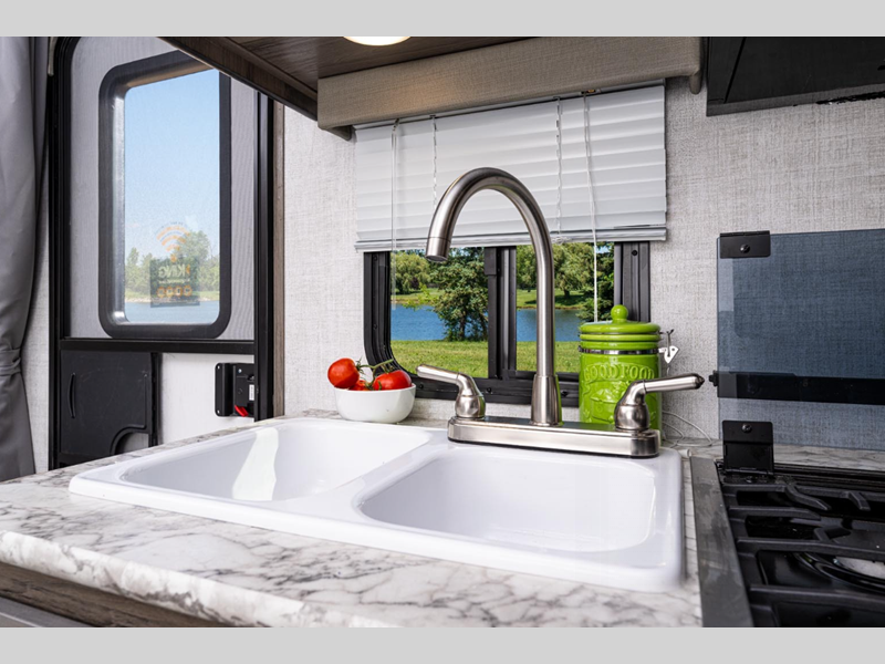 Each model is constructed with a one-piece vinyl roof and fiberglass exterior sidewalls for a durable trailer made to last. You will love the look of the designer window treatments, wood cabinet doors, easy-care vinyl flooring. With single axle units and 90" wide double axle units, you can be sure there is an Envision STV for you!