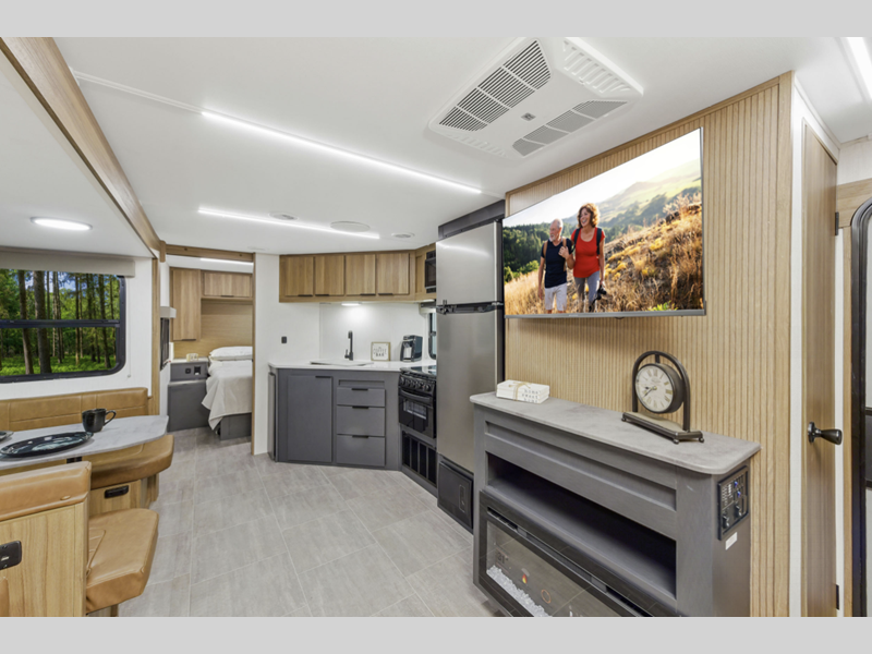 Sleeps 5 Slides 1 Length 26 ft 11 in Ext Width 8 ft 1 in Ext Height 10 ft 11 in Interior Color Uptown Hitch Weight 618 lbs GVWR 7618 lbs Dry Weight 5246 lbs Cargo Capacity 2340 lbs Fresh Water Capacity 44 gals Grey Water Capacity 30 gals Black Water Capacity 30 gals Furnace BTU 30000 btu Available Beds Queen Refrigerator Type Residential Stainless Steel Refrigerator Size 10.7 cu ft Cooktop Burners 3 Number of Awnings 1 Axle Weight 3500 lbs LP Tank Capacity 20 lbs Water Heater Capacity 6 gal Water Heater Type DSI Gas/Electric AC BTU 13500 btu TV Info LR 40" LED TV Awning Info 19' Power w/ LED Light Strip Axle Count 2 Number of LP Tanks 2 Shower Type Standard Electrical Service 30 amp Similar Floorplans