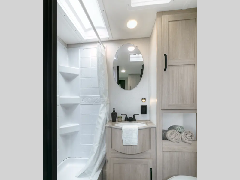 Sleeps 8 Slides 1 Length 33 ft 5 in Ext Width 8 ft Ext Height 10 ft 11 in Hitch Weight 785 lbs GVWR 8023 lbs Dry Weight 6523 lbs Cargo Capacity 1500 lbs Fresh Water Capacity 43 gals Grey Water Capacity 35 gals Black Water Capacity 35 gals Number Of Bunks 4 Available Beds RV Queen Refrigerator Type Stainless 12V Refrigerator Size 10 cu ft Cooktop Burners 3 Shower Size 40" Number of Awnings 1 LP Tank Capacity 20 lbs Water Heater Capacity 6 gal Water Heater Type GE Gas/Electric AC BTU 13500 btu Awning Info 15' Axle Count 2 Shower Type Standard Similar Floorplans
