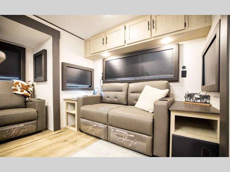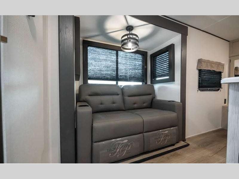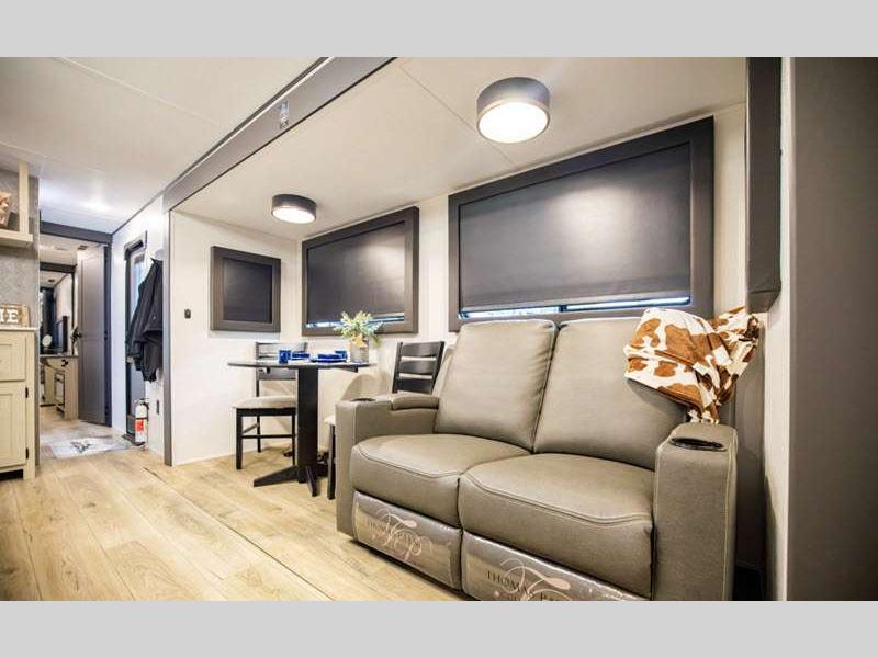 Sleeps 8 Slides 2 Length 35 ft 7 in Ext Width 8 ft Ext Height 11 ft 8 in Hitch Weight 767 lbs GVWR 9567 lbs Dry Weight 7439 lbs Cargo Capacity 2128 lbs Fresh Water Capacity 29 gals Grey Water Capacity 30 gals Black Water Capacity 30 gals Number Of Bunks 3 Available Beds RV Queen Refrigerator Size 10 cu ft Cooktop Burners 3 Shower Size 24" x 40" Number of Awnings 1 LP Tank Capacity 20 lbs Water Heater Type Tankless AC BTU 13500 btu Axle Count 2 Number of LP Tanks 2 Shower Type Standard Solar Wattage 200 watts Similar Floorplans