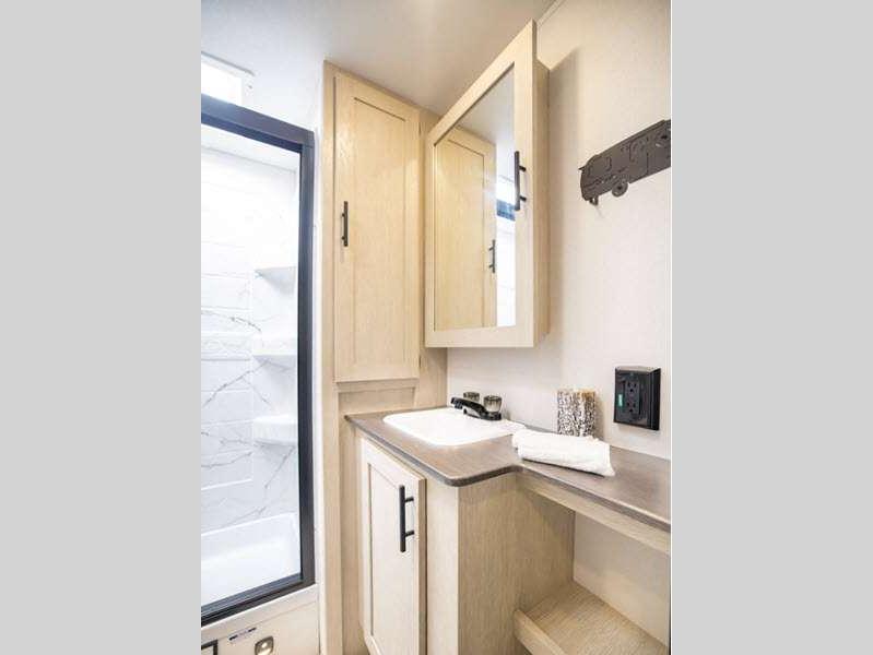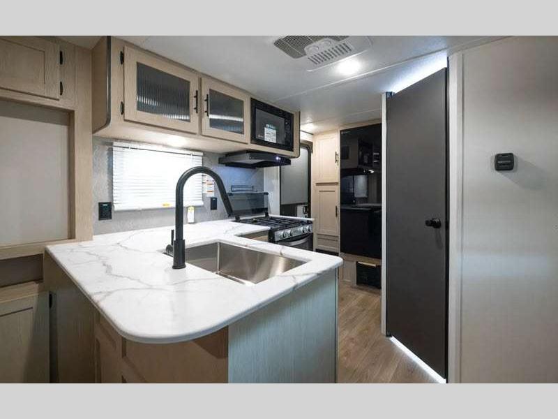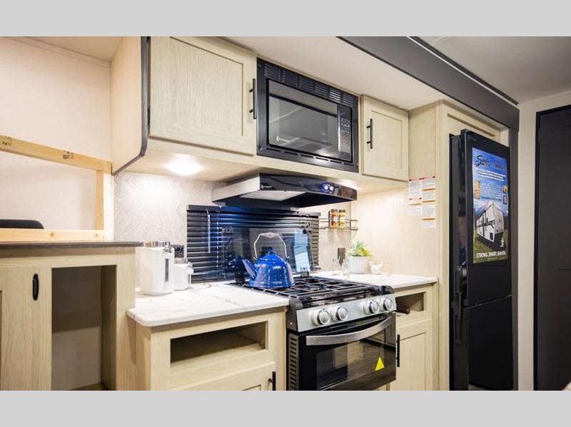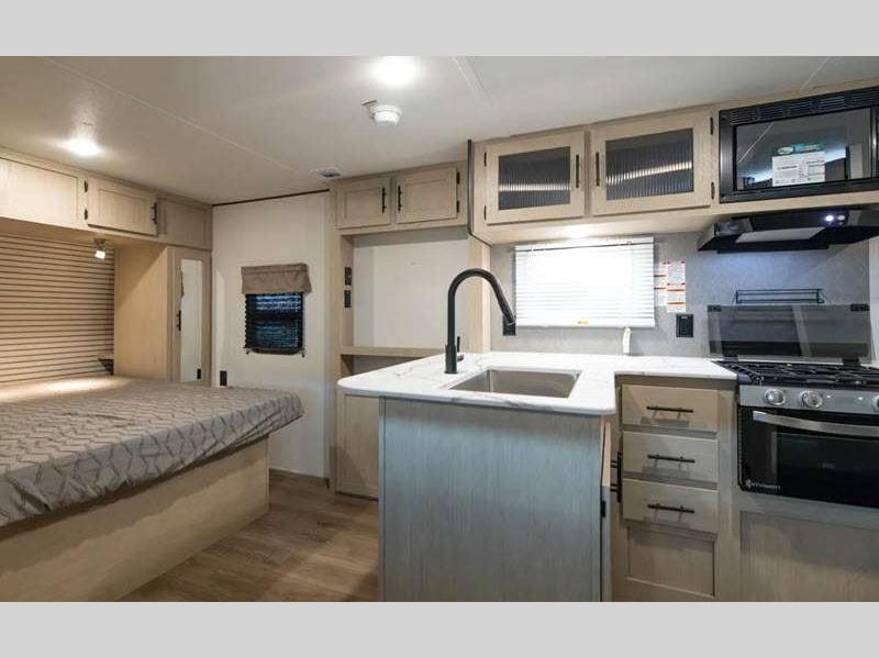 Sleeps 3 Slides 1 Length 24 ft 2 in Ext Width 8 ft Ext Height 11 ft 3 in Hitch Weight 455 lbs GVWR 6350 lbs Dry Weight 4417 lbs Cargo Capacity 1933 lbs Fresh Water Capacity 42 gals Grey Water Capacity 36 gals Black Water Capacity 36 gals Available Beds RV Queen Refrigerator Size 10 cu ft Cooktop Burners 3 Shower Size 24" x 40" Number of Awnings 1 LP Tank Capacity 20 lbs Water Heater Type Tankless AC BTU 13500 btu Axle Count 2 Number of LP Tanks 2 Shower Type Standard Solar Wattage 200 watts Similar Floorplans