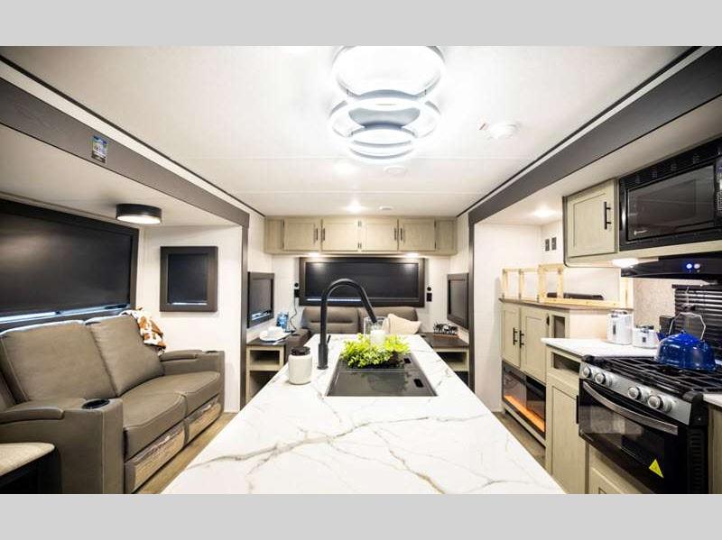 Sleeps 5 Slides 1 Length 30 ft 3 in Ext Width 8 ft Ext Height 11 ft 3 in Hitch Weight 580 lbs GVWR 6750 lbs Dry Weight 5238 lbs Cargo Capacity 1512 lbs Fresh Water Capacity 40 gals Grey Water Capacity 30 gals Black Water Capacity 30 gals Available Beds RV Queen Refrigerator Size 10 cu ft Cooktop Burners 3 Shower Size 24" x 40" Number of Awnings 1 LP Tank Capacity 20 lbs Water Heater Type Tankless AC BTU 13500 btu Axle Count 2 Number of LP Tanks 2 Shower Type Standard Solar Wattage 200 watts Similar Floorplans