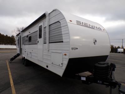 With any Sienna travel trailer by Venture RV, you will enjoy a lightweight unit, convenient amenities, and a durable construction that includes a BAL NXG-bolted frame. There is also a heated and enclosed one-piece underbelly, residential fiberglass insulation, and a reflective PVC roof membrane within the Weather-Shield Package to help extend your camping season. Outside, the BAL 5.0 power stabilizer jacks and power tongue jack will have you set up in no-time, and the Venture RV bottle opener/dog tie down will make it easy to bring your furry friends along. Head inside to enjoy the modern farmhouse design, along with Beauflor throughout with no carpet, custom backsplash, large underbed storage, and a bath skylight to name a few comforts!