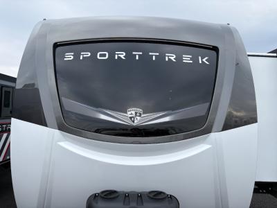 An elegant design and new features come with every one of these Venture RV SportTrek Touring Edition travel trailers! The NXG Huck bolt frame holds these units together and a walkable roof covers them. Heads will turn down the highway and at the campsite with an upgraded graphics package and a painted fiberglass front cap with integrated LED light. The exterior pass-through storage area has slam latch baggage doors with magnetic catches so you don't have to worry about them closing on you and a motion activated light to see your items clearly even at night. Luxury abounds throughout these units, especially with the mandatory Interior Luxury package which comes with solid surface kitchen countertops, designer valances with fabric nightshades, two 30" frameless fireplaces, and Beauflor wood plank flooring that is easy to clean. Come find your favorite model today!